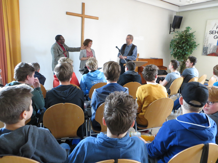 Am Samstag, dem 9. April 2016, hatten die Konfirmanden Besuch von Pfarrer Robert Byamungu, ökumenischer Mitarbeiter in der Kirchengemeinde Habinghorst, und Petra Stach-Wittekind vom Eine-Welt-Zentrum.
