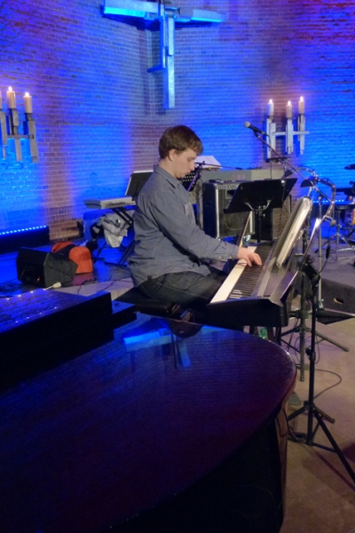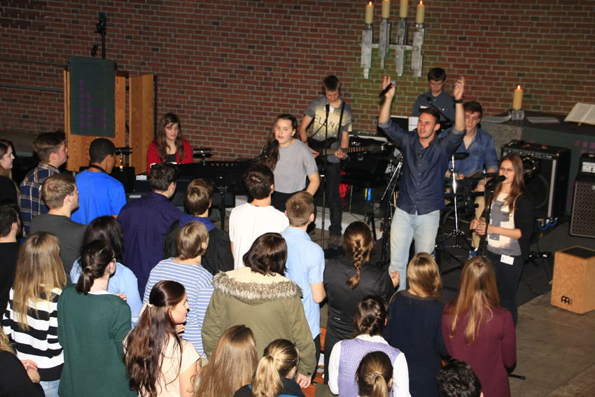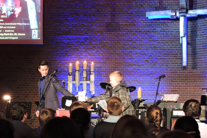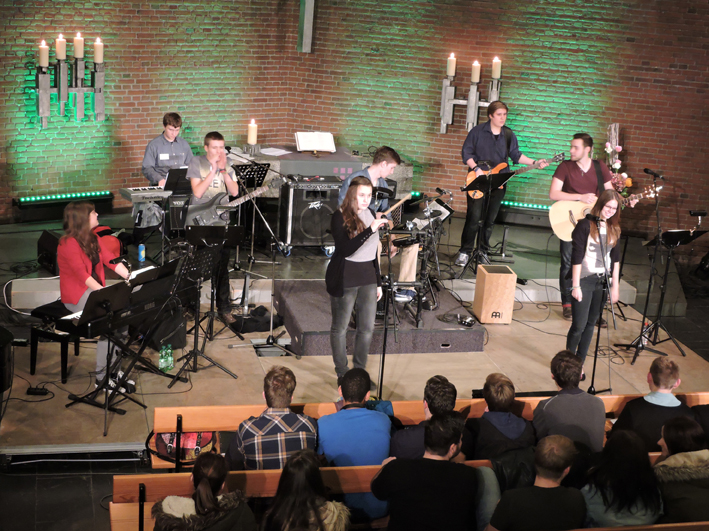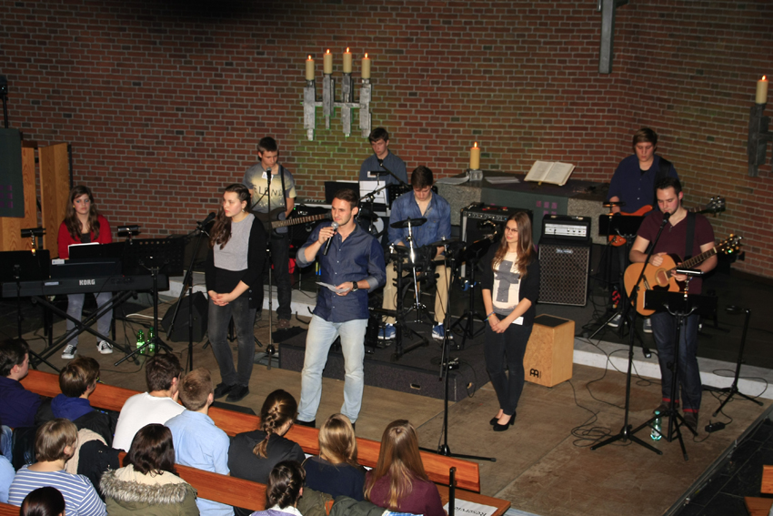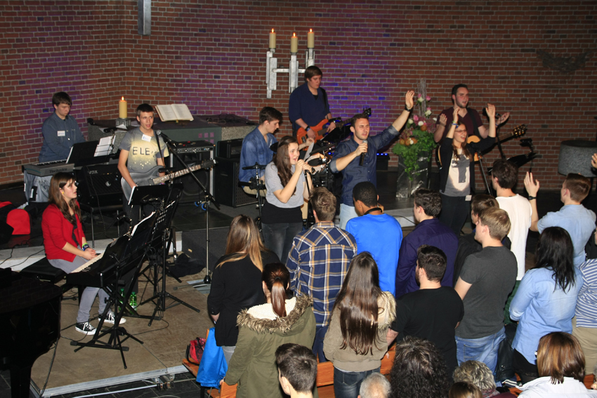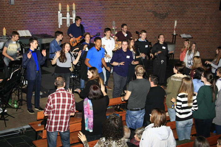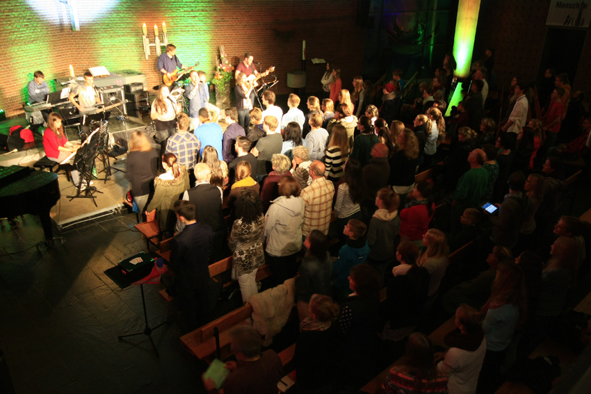 Los ging es um 18 Uhr mit einem leckeren Imbiss. Um 20 Uhr begann mit der Praise & Worship-Night (Lobpreis und Anbetung) der Höhepunkt des Abends mit deutschen und englischen Liedern zum Mitsingen in der illuminierten Stephanuskirche. Friedhelm Libuschewski, Leiter des Jugendreferats im Kirchenkreis Herne, gab die gedanklichen Impulse dazu.