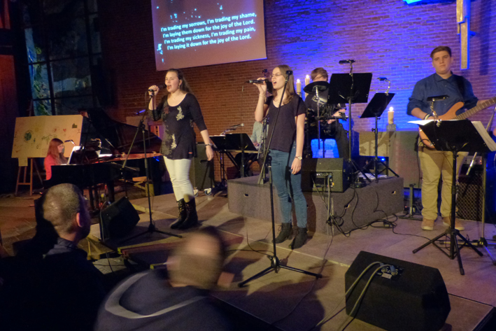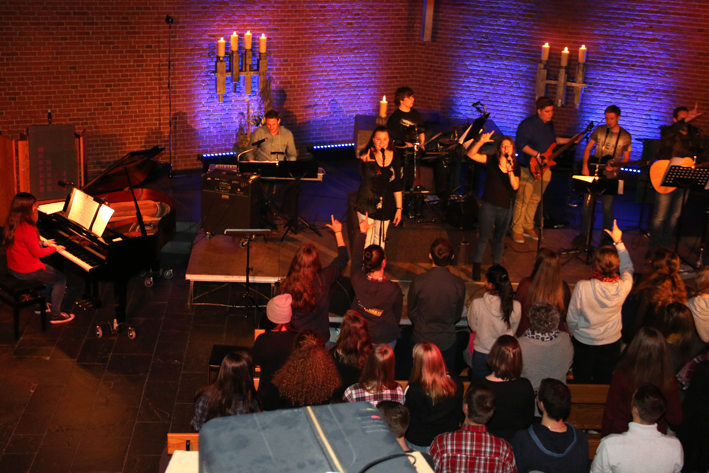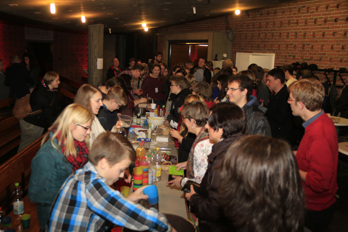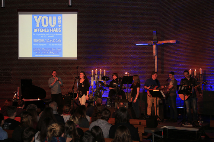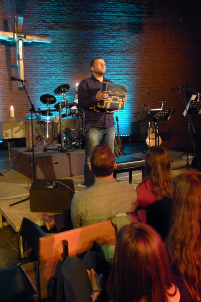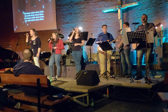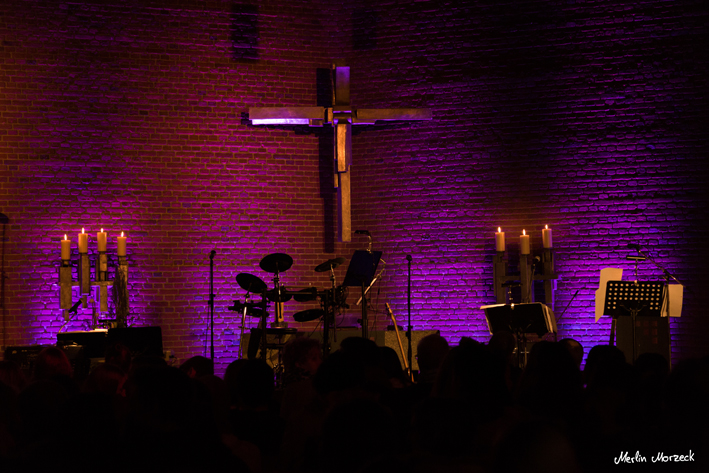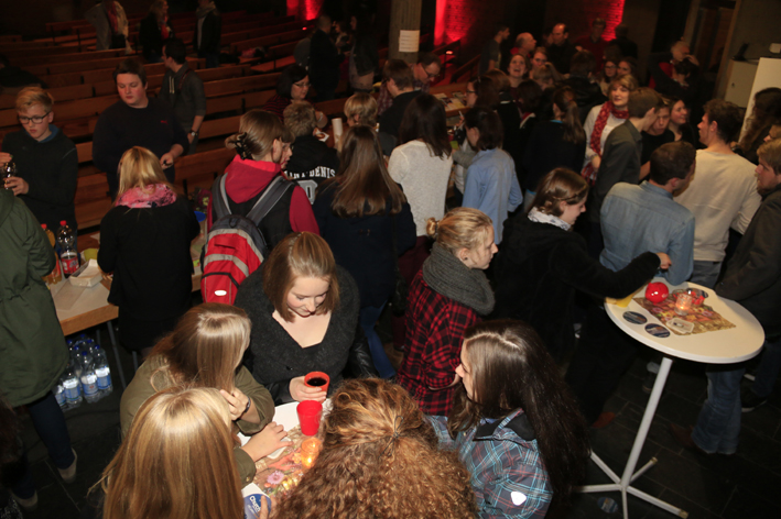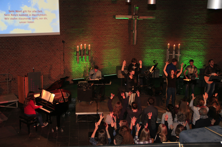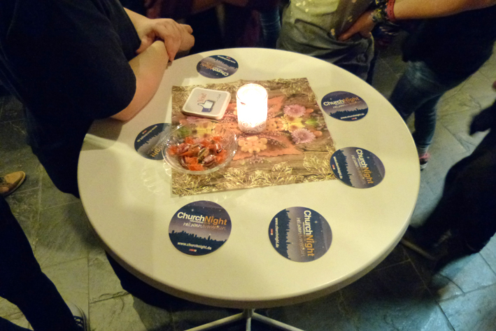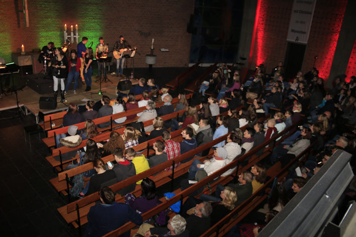Los ging es um 19 Uhr mit einem leckeren Imbiss. Um 20 Uhr begann mit der Praise & Worship-Night (Lobpreis und Anbetung) der Höhepunkt des Abends mit deutschen und englischen Liedern zum Mitsingen in der illuminierten Stephanuskirche. Der Geschichtenerzähler Jojo Zwingelberg gab die gedanklichen Impulse dazu.