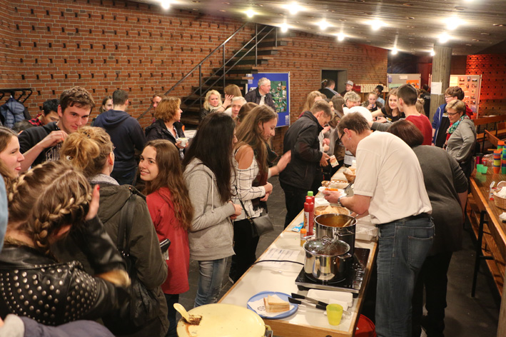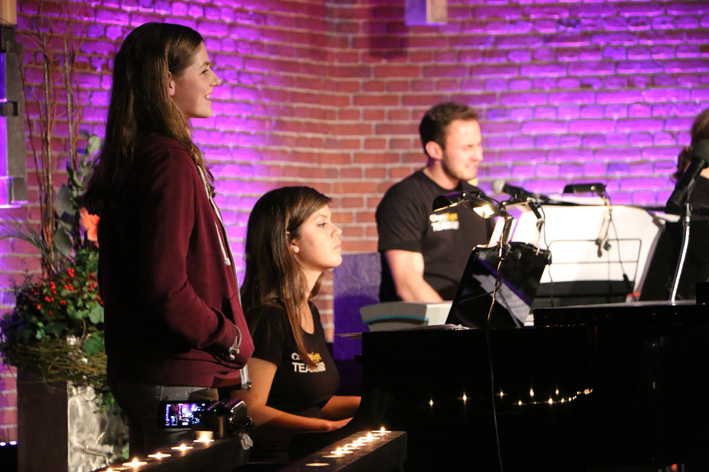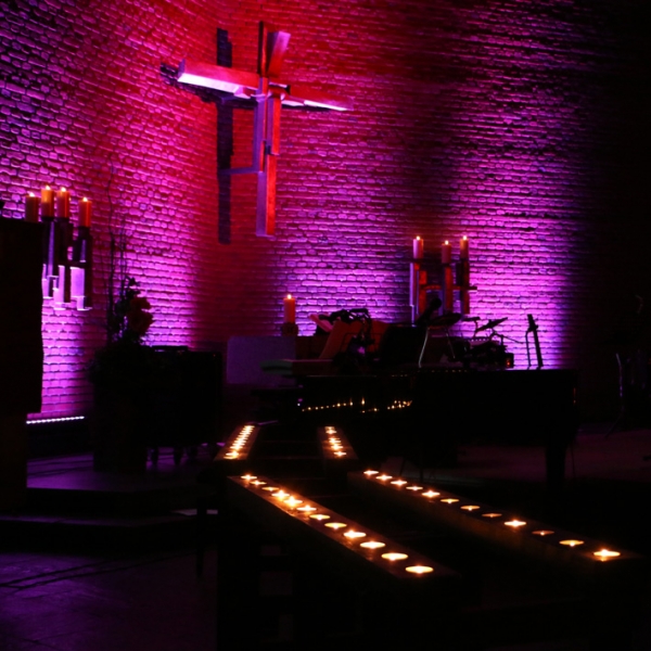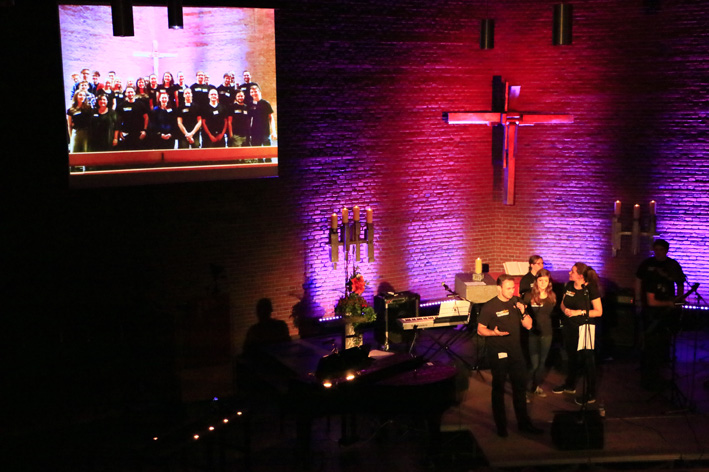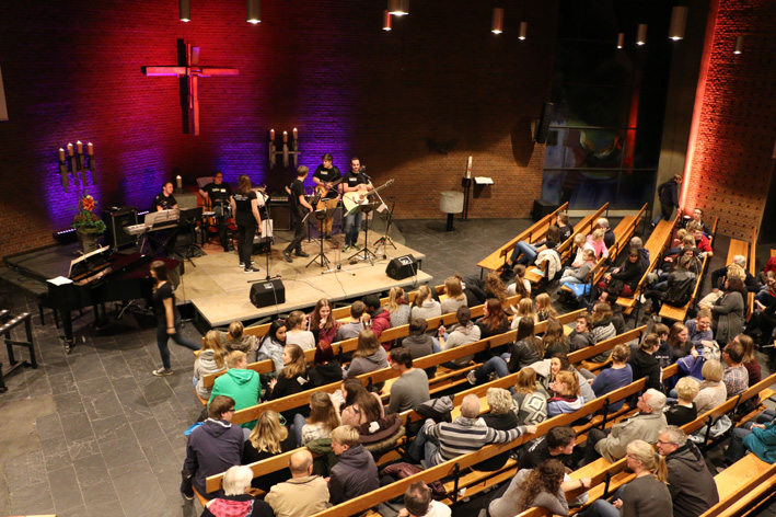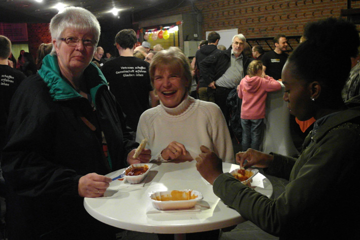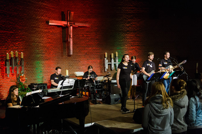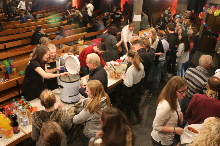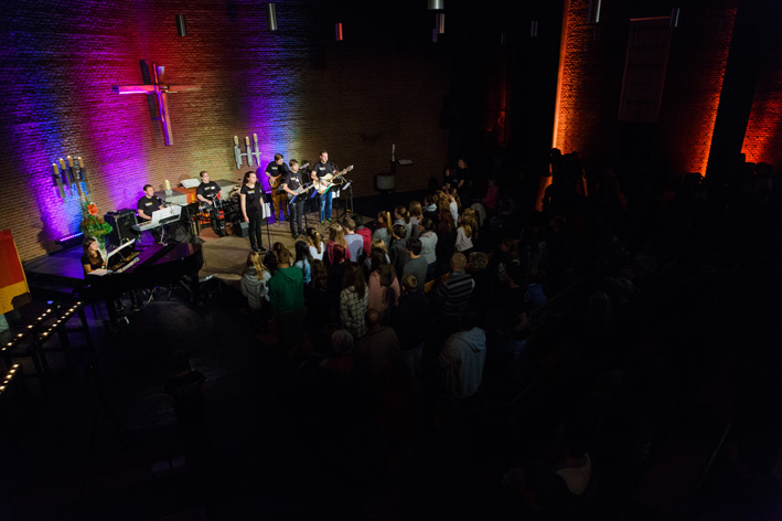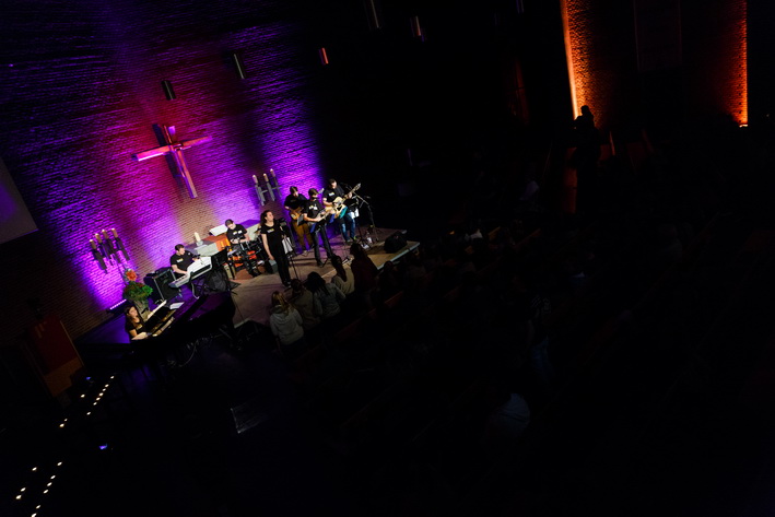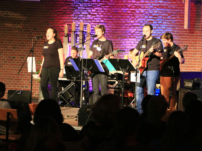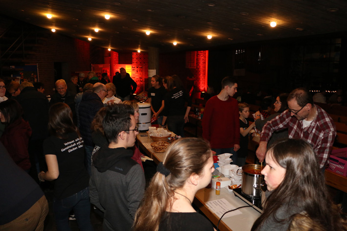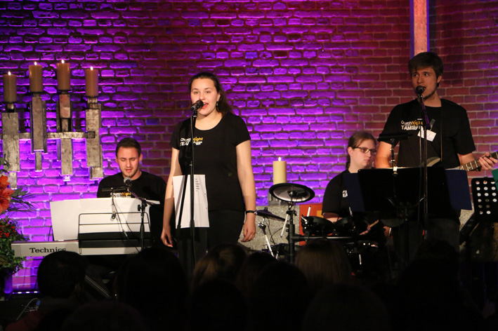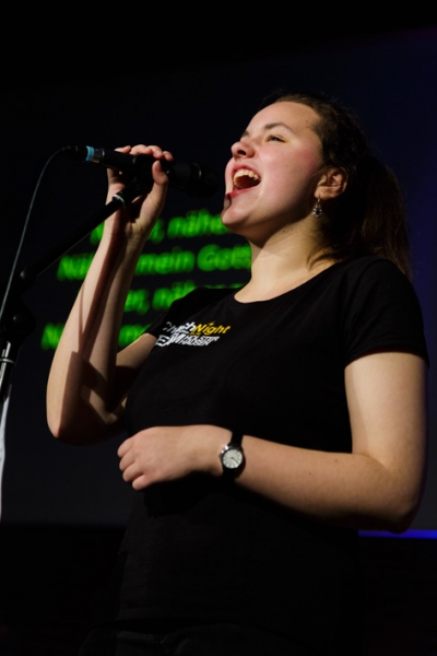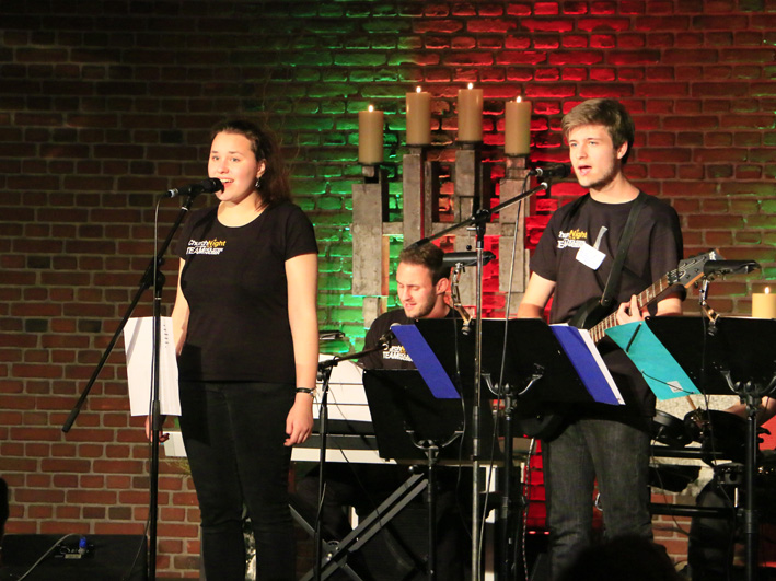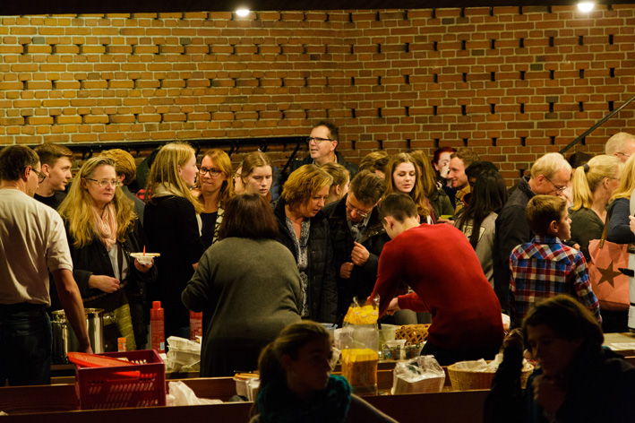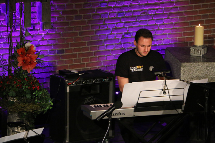 Los ging es um 19 Uhr mit einem leckeren Imbiss. Um 20 Uhr begann mit der Praise & Worship-Night (Lobpreis und Anbetung) der Höhepunkt des Abends mit deutschen und englischen Liedern zum Mitsingen in der illuminierten Stephanuskirche.