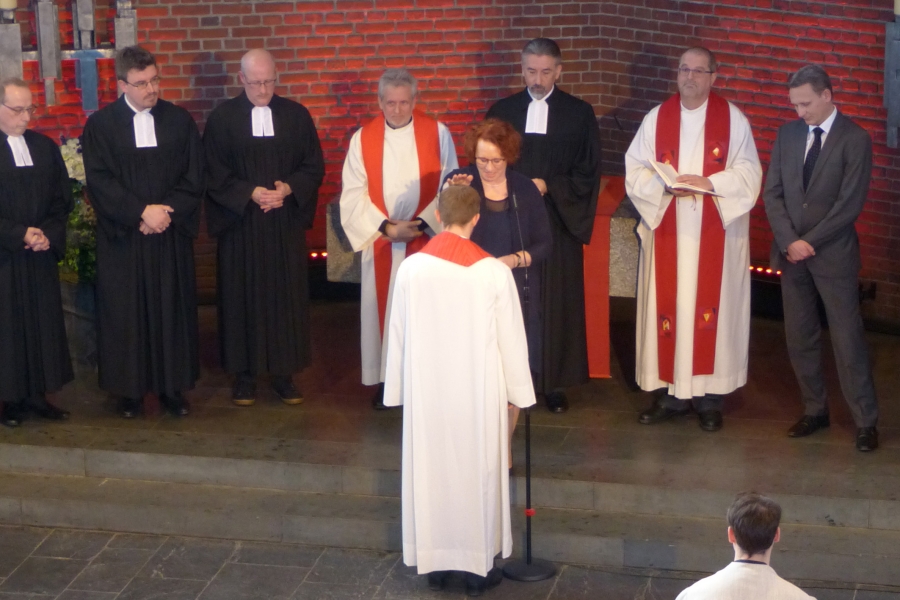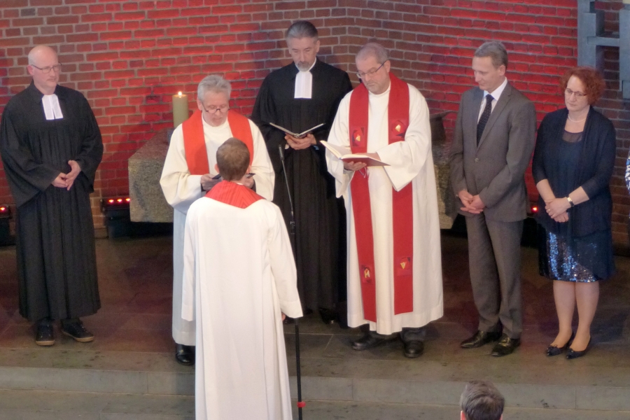 Der Superintendent Reiner Rimkus führte Pfarrer Ferdinand Kenning im Gottesdienst am Sonntag Okuli, den 24. März 2019, nach der Agende in sein Amt ein.