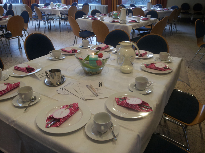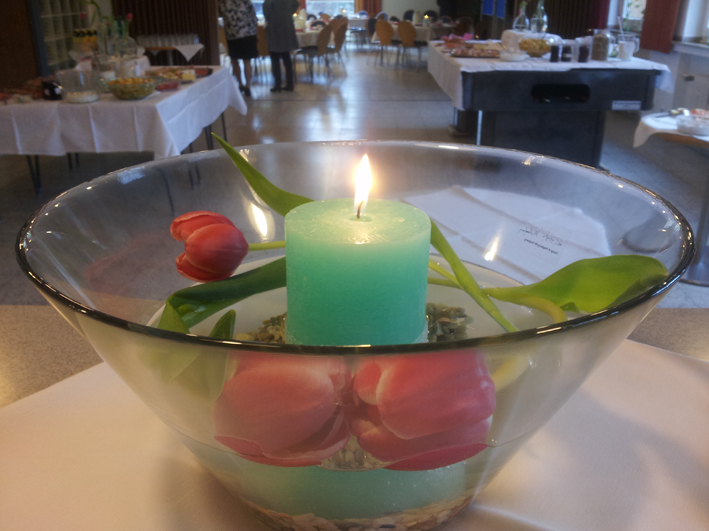 Musikalisch führte uns Claudia Eckert durch den Morgen; Carsten Rahe begleitete ihren Gesang am Klavier. Die mit Bedacht ausgesuchten, dargebotenen Lieder unterstützten die positiv geladene Atmosphäre und sorgten bei einigen Teilnehmerinnen auch für Gänsehaut. Natürlich gab es auch wieder ein liebevoll und aufwendig gestaltetes Buffet, das kaum einen Wunsch offen ließ. Abgerundet wurde das Ganze durch eine sehr schöne und kreative Dekoration, die man - wie jedes Mal - am Ende der Veranstaltung käuflich erwerben konnte.