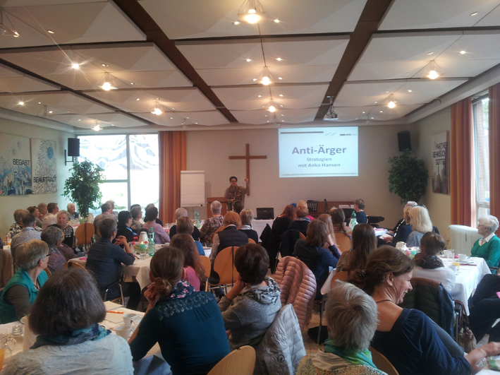 Zu diesem Thema war am 23. April 2016 Anka Hansen bei uns zu Gast und hat mit allen anwesenden Frauen einen Impuls-Workshop durchgeführt. Mal gab sie einen Denkanstoß, mal provozierte sie respektvoll und wertschätzend die Reflektion über sich selbst und das persönliche Handeln; Frau Hansen verstand es, jeden mit ihrer fröhlichen Ausstrahlung mitzureißen. Alle haben motiviert teilgenommen, haben kleine Aufgaben ausgeführt und sich gegenseitig ausgetauscht. Dabei gab es den ein oder anderen „Aha-Effekt“, und es wurde nachgedacht, aber vor allen Dingen wurde eins: gelacht.
