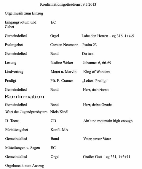 Wie in den vergangenen Jahren wurde auch im Jahr 2013 am Festtag Christi Himmelfahrt in der Stephanuskirche konfirmiert.