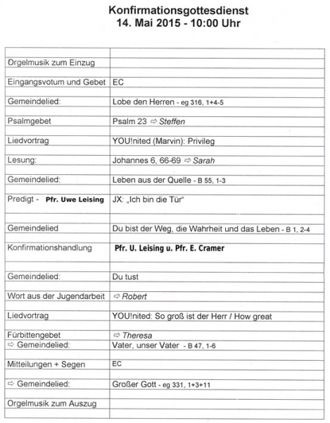 Am Festtag Christi Himmelfahrt empfingen 20 Mädchen und Jungen aus unserer Kirchengemeinde den Segen der Konfirmation. Pfarrer Eckhard Cramer und Pfarrer Uwe Leising konfirmierten.