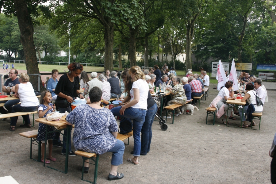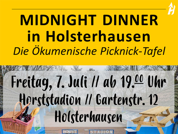 Am Freitag , den 7. Juli 2017, feiertenStephanus-Kirchengemeinde - Heilige Familie - St. Franziskus - St. Marien Eickel im Horstadion das Midnight Dinner - die Ökumenische Picknick-Tafel.