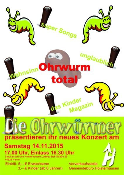 lautete das Konzert, zu dem am Samstag, den 14. November 2015, der Kinderchor Die Ohrwürmer in die Stephanuskirche eingeladen hatte. Ein bunter Mix an Liedern und Themen wurde in Form einer Fernsehsendung präsentiert.