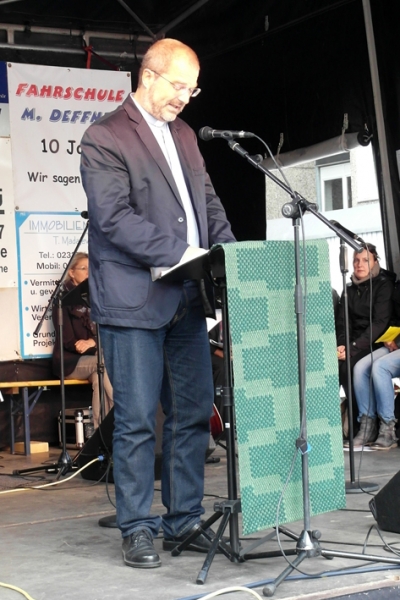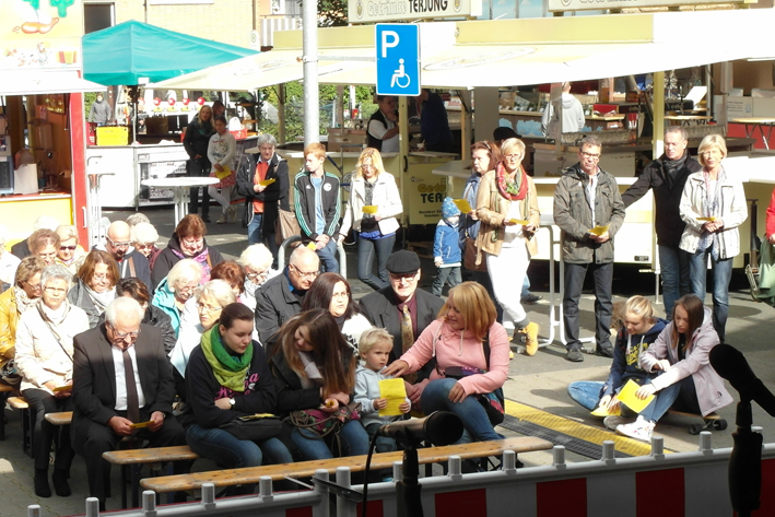 Zusammen mit Schwestern und Brüdern der katholischen Nachbargemeinden feierten wir den ökumenischer Open-Air-Gottesdienst an der Bielefelder Straße (Penny-Parkplatz) am 20. September 2015. Der Anlass dazu war das 26. HerbstFest der Werbegemeinschaft Holsterhausen.