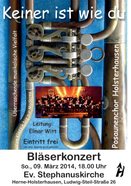 Unter diesem Thema stand am 9. März 2014 in der Stephanuskirche das diesjährige Konzert des Posaunenchores unter der Leitung von Elmar Witt. Unterstützt wurde der Chor von Siegbert Gatawis an der Orgel und der Band YOU!nited. Dieter Berndt moderierte den Abend.